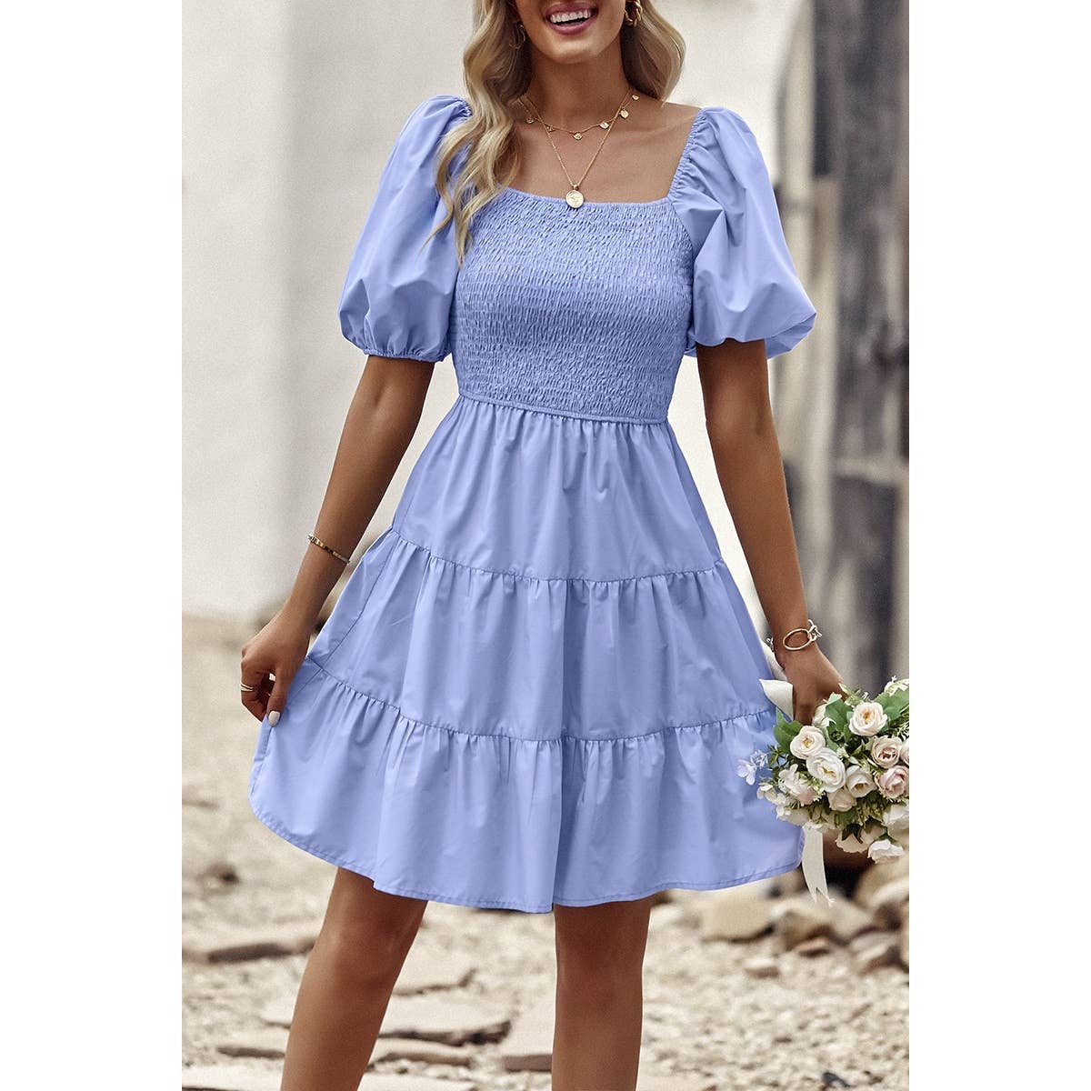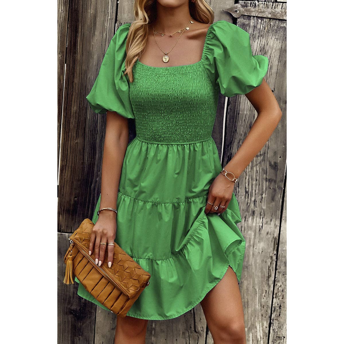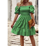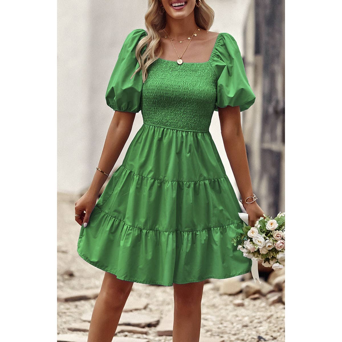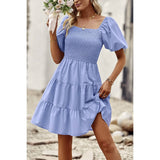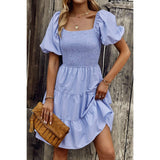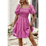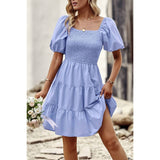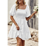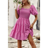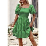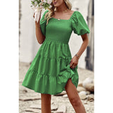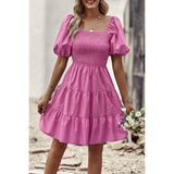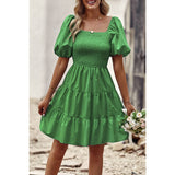 Introducing our Square Neck Ruched Puff Sleeve Solid Dress, a perfect blend of elegance and modernity. Crafted from high-quality fabric, this dress offers both comfort and style. The square neckline adds a sophisticated touch, while the ruched puff sleeves elevate the overall look with a trendy flair. With its solid color design, this dress exudes versatility, making it suitable for various occasions. Whether you're attending a cocktail party or a dinner date, this dress ensures you make a fashionable statement with confidence.