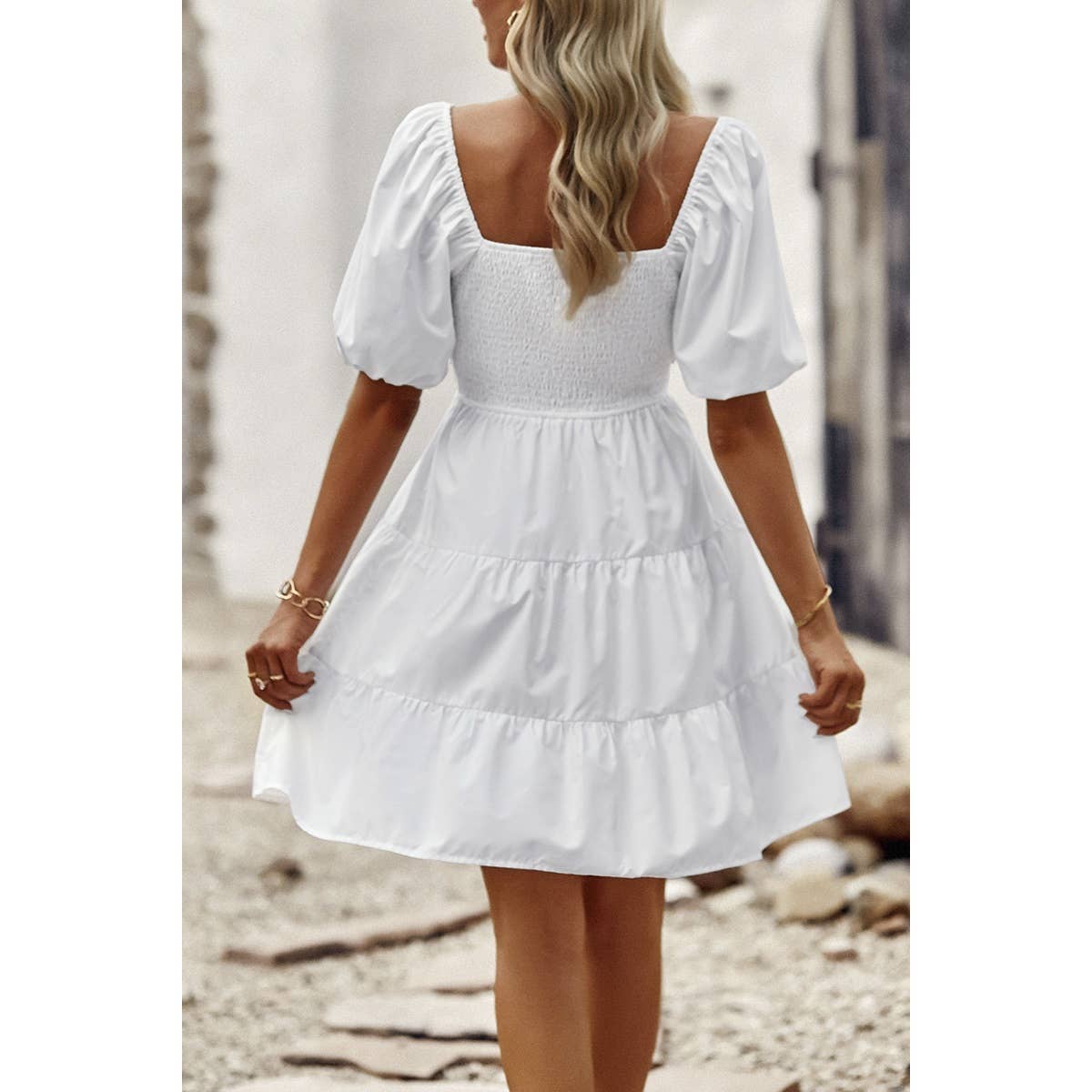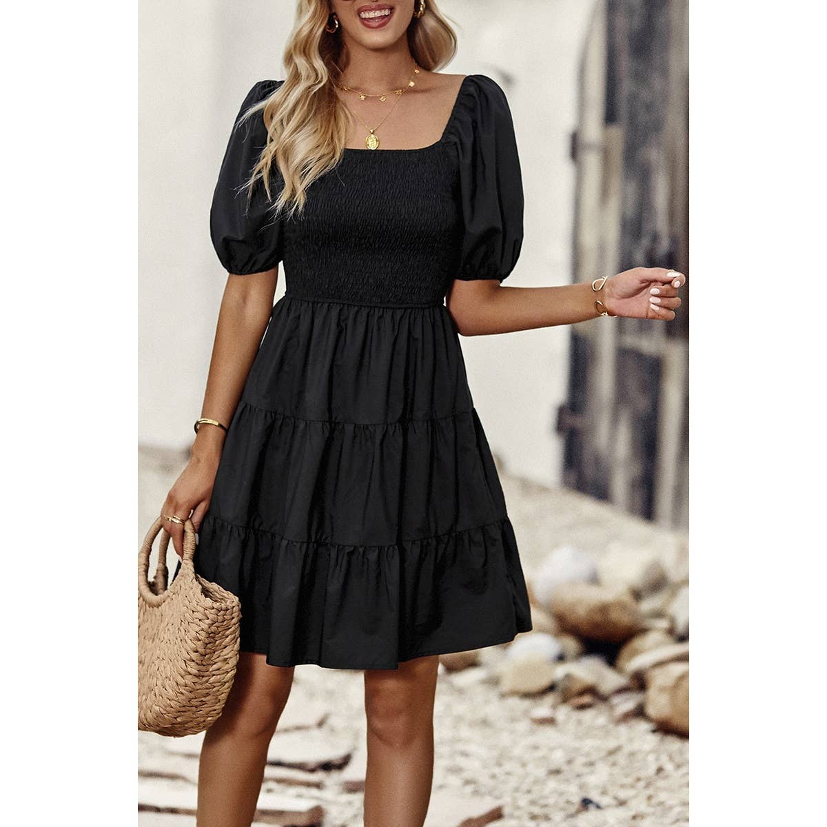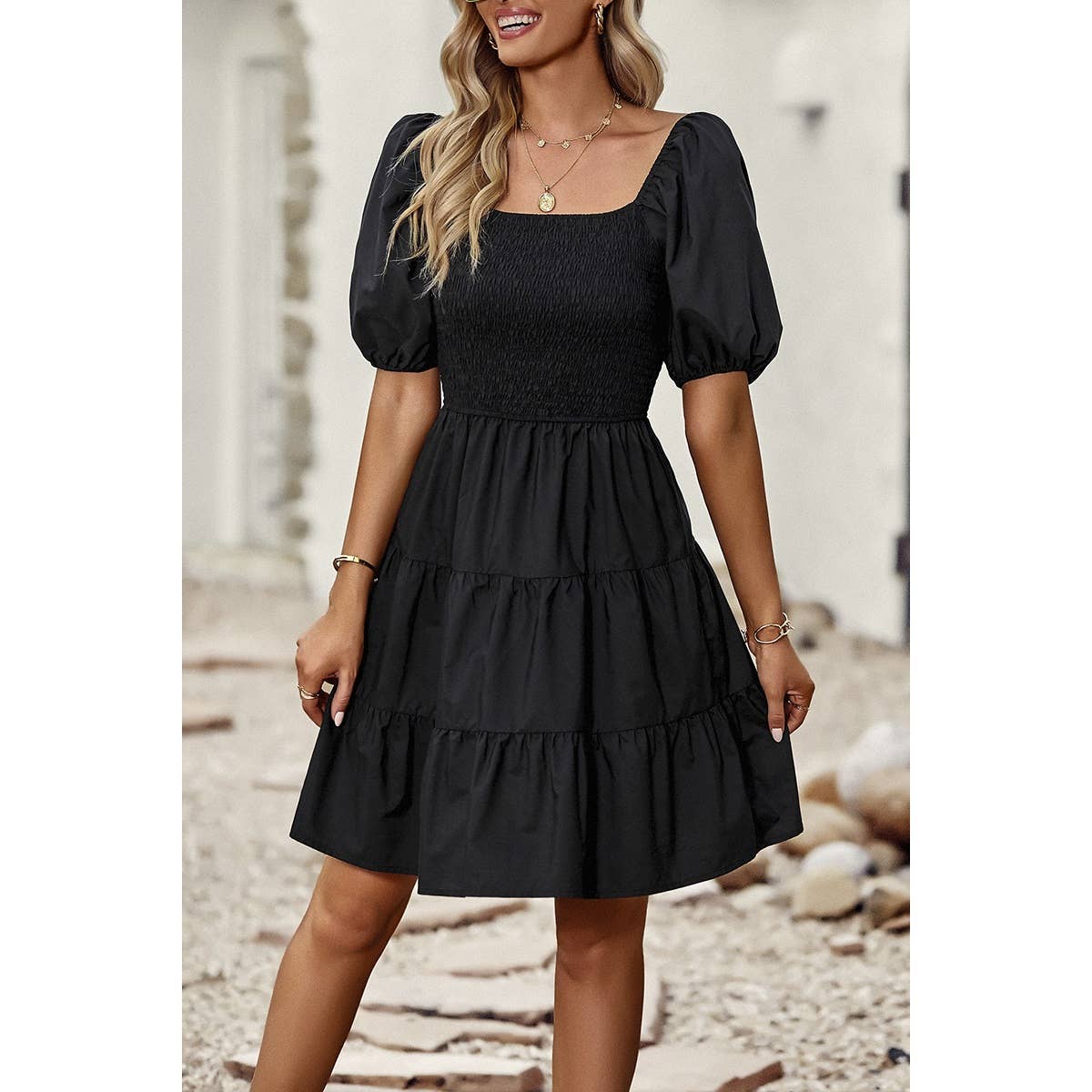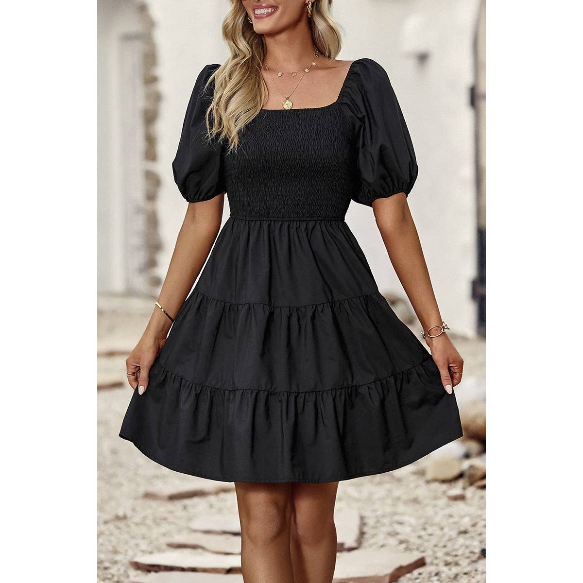 Introducing our Square Neck Ruched Puff Sleeve Solid Dress, a perfect blend of elegance and modernity. Crafted from high-quality fabric, this dress offers both comfort and style. The square neckline adds a sophisticated touch, while the ruched puff sleeves elevate the overall look with a trendy flair. With its solid color design, this dress exudes versatility, making it suitable for various occasions. Whether you're attending a cocktail party or a dinner date, this dress ensures you make a fashionable statement with confidence.